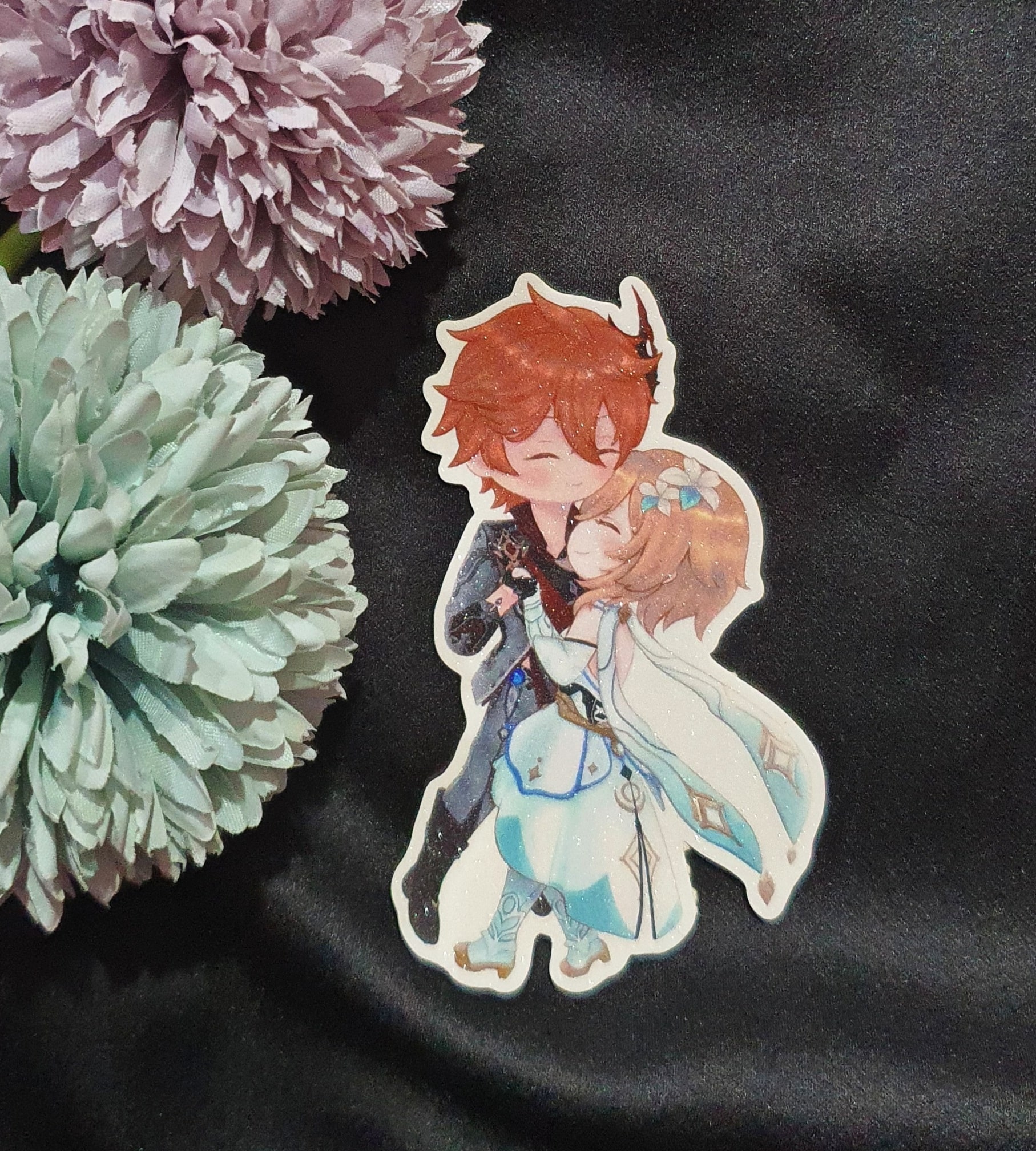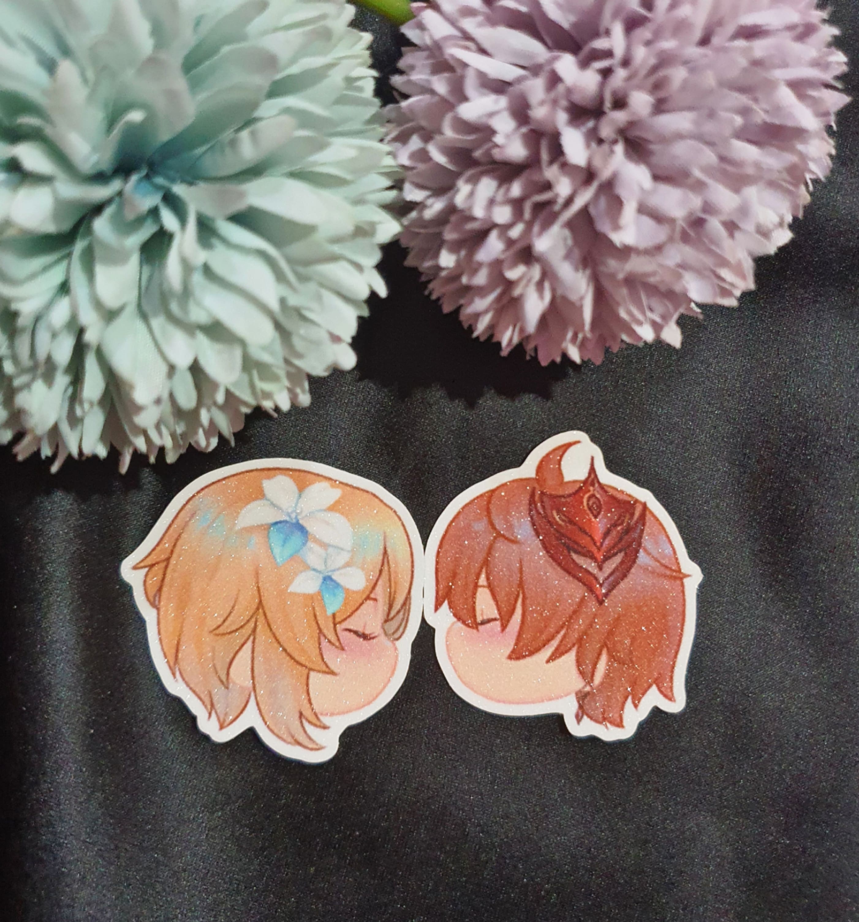 Genshin Impact Chilumi die cut stickers. Glitter laminated