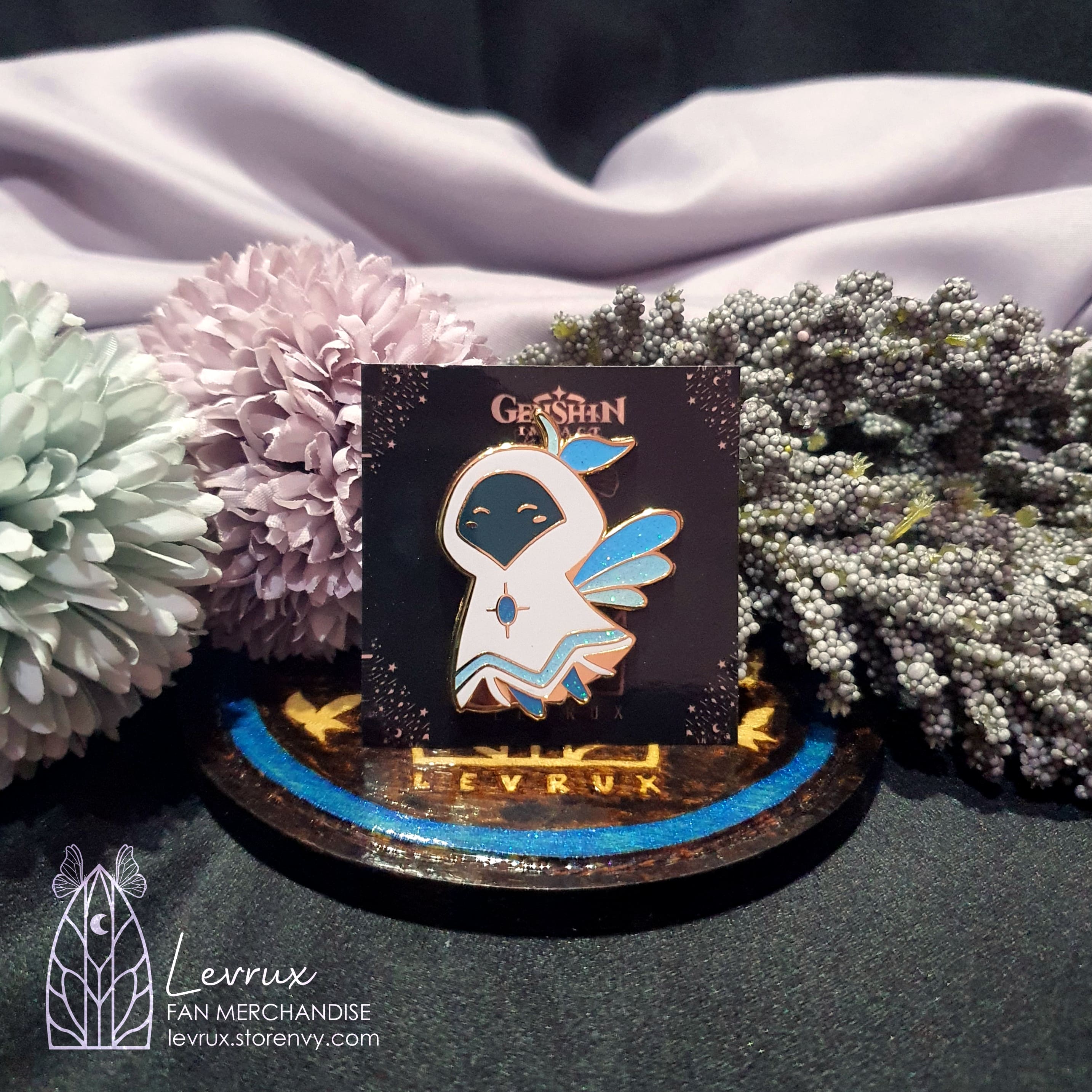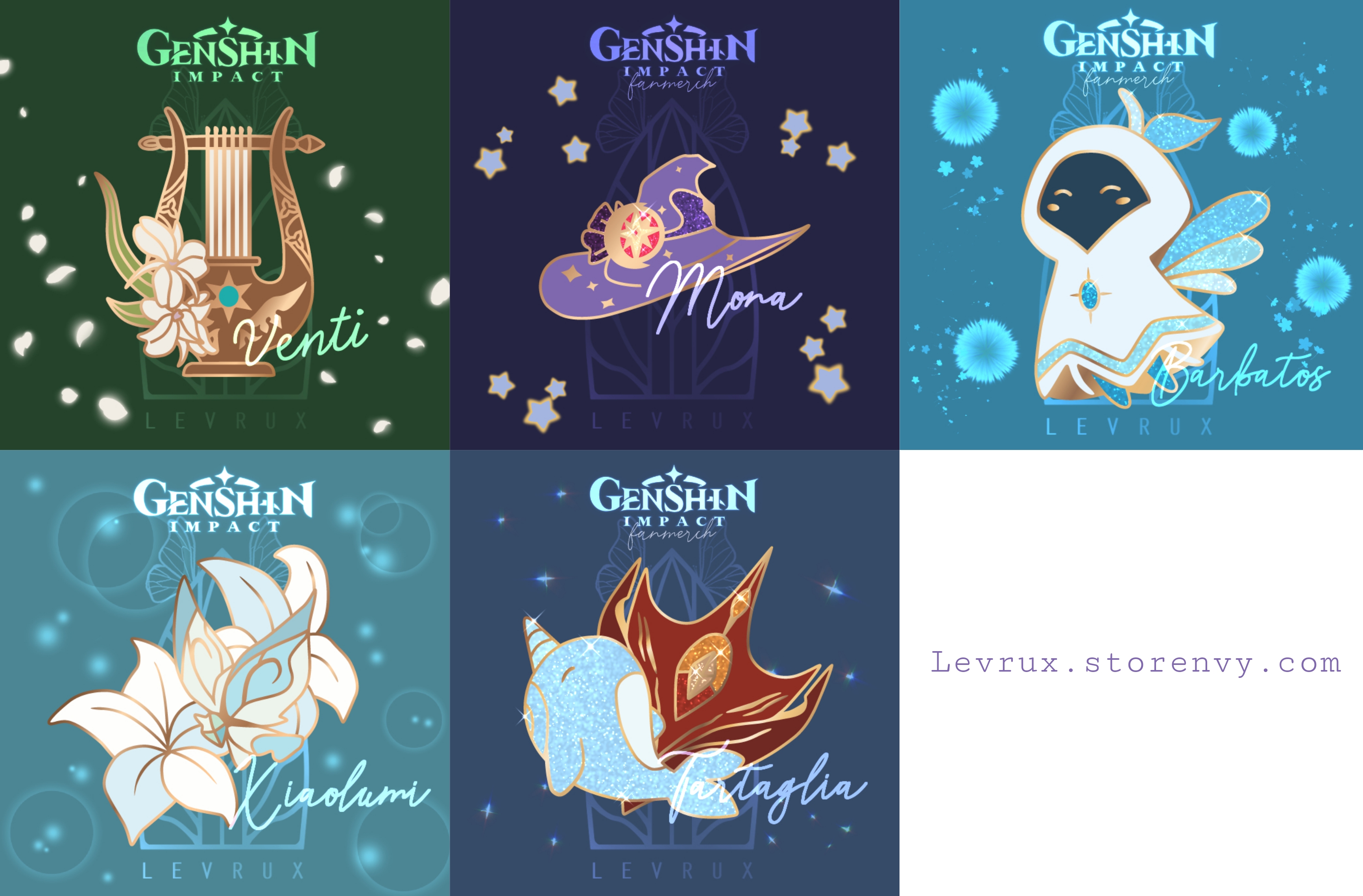 Genshin Impact themed enamel pins. PO turnaround time around 30 days. Orders will receive stickers and mini prints as bonus.